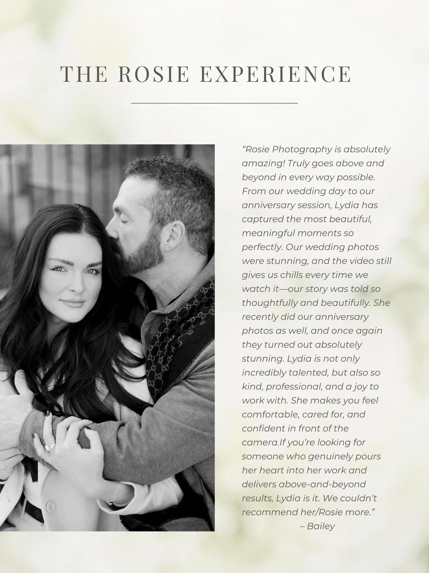 She recently did our anniversary photos as well, and once again they turned out absolutely stunning. Lydia is not only incredibly talented, but also so kind, professional, and a joy to work with. She makes you feel comfortable, cared for, and confident in front of the camera. If you’re looking for someone who genuinely pours her heart into her work and delivers above-and-beyond results, Lydia is it. We couldn’t recommend her/Rosie more 🤍